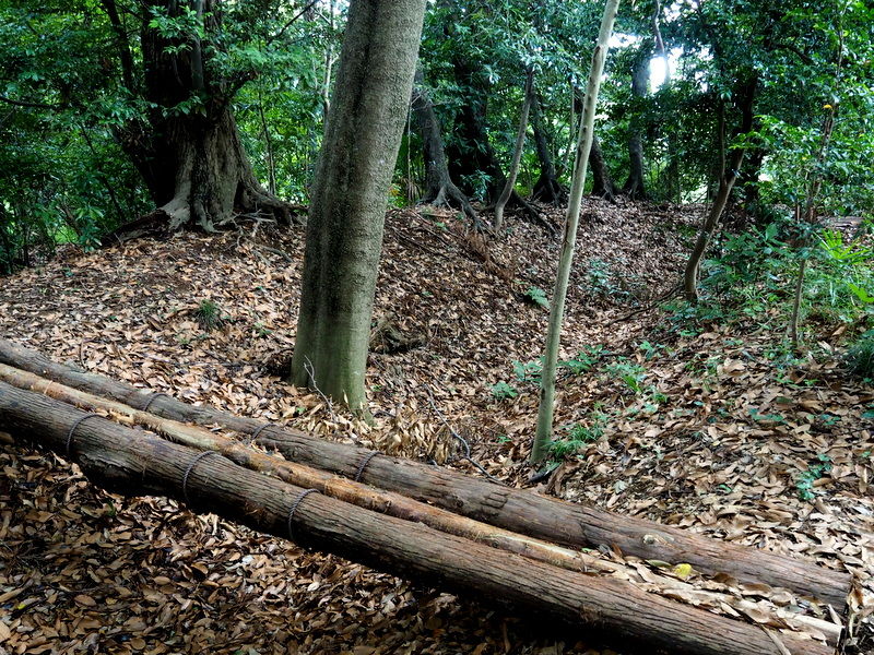 今回は森の中に入れていただきましたので、素晴らしい二重土手の遺構を写真に納めることができました(喜)。実はこの時、"森の主"にも出会いました。写真は撮れませんでしたが、ちょっと感動。ただ、やぶ蚊の猛攻を受け、猛烈なかゆみの中での感動でしたけど(苦笑)