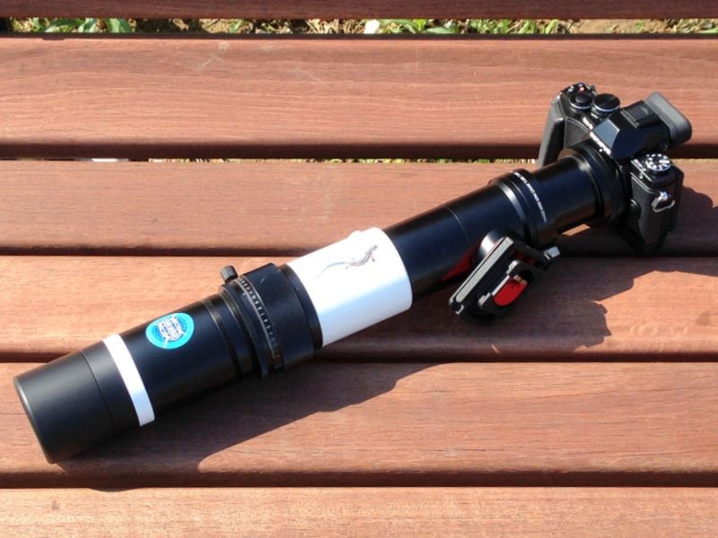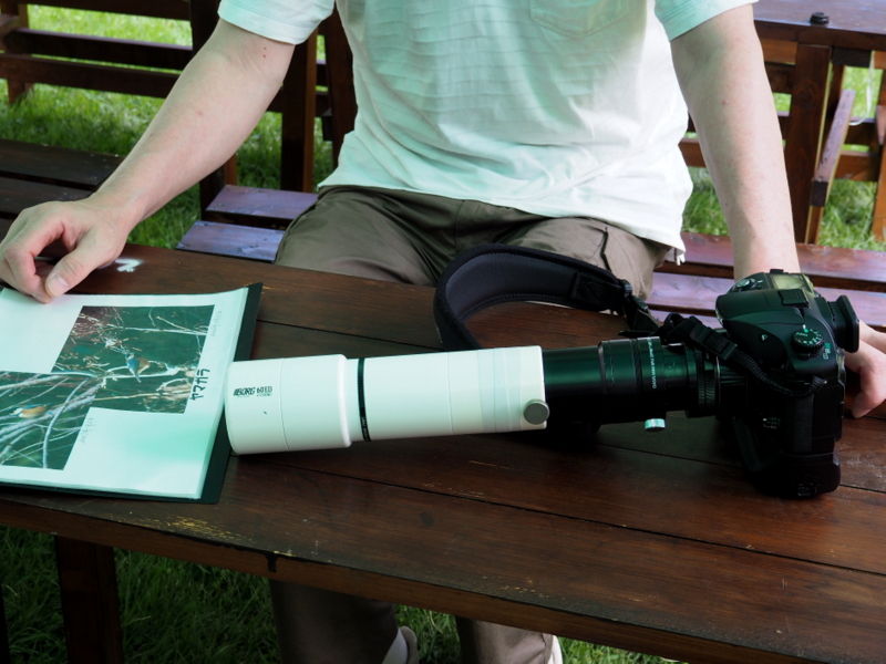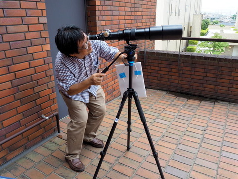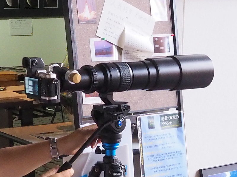 そして、会場に展示してあったBORGの最新製品(笑)。口径90mm、焦点距離の500mmのフローライト対物レンズです。オリンパスのミラーレスデジカメに取り付けると、実質1000mmの超望遠レンズになります。しかも、手持ちでの撮影もなんとかOKでした。