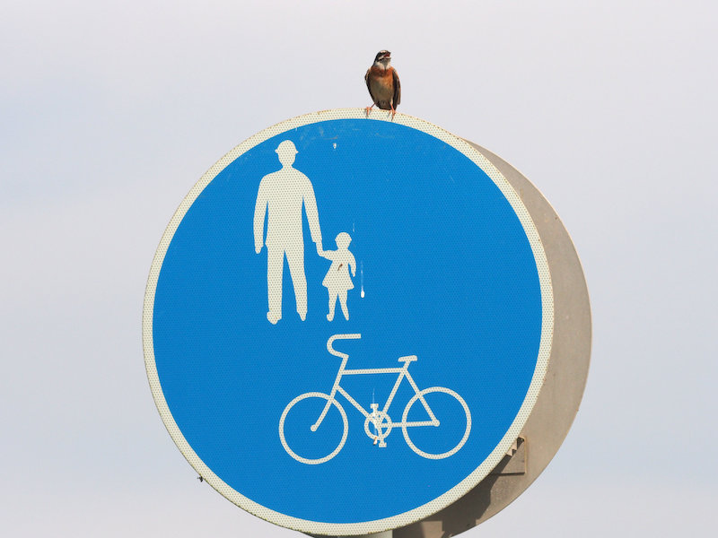 それでも、なんとか手賀沼。蓮の大群生を横目で見て、道路標識にとまったホオジロが「一筆啓上仕候(いっぴつけいじょうつかまつりそうろう)」と気持ち良くさえずるのを聞きながら、ヨタヨタと走っていると、「東葛人さん」と呼ぶ声が。