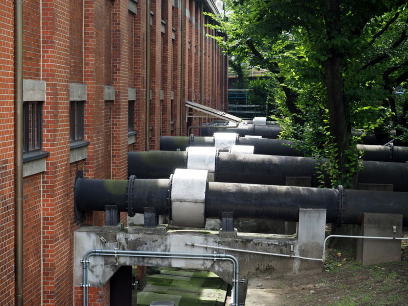三河島水再生センターはもちろん、今も現役の下水処理施設です。重要文化財となっているのは、その一部の運用を止めた施設で、地上の建物はレンガ造りでなかなかの趣です。