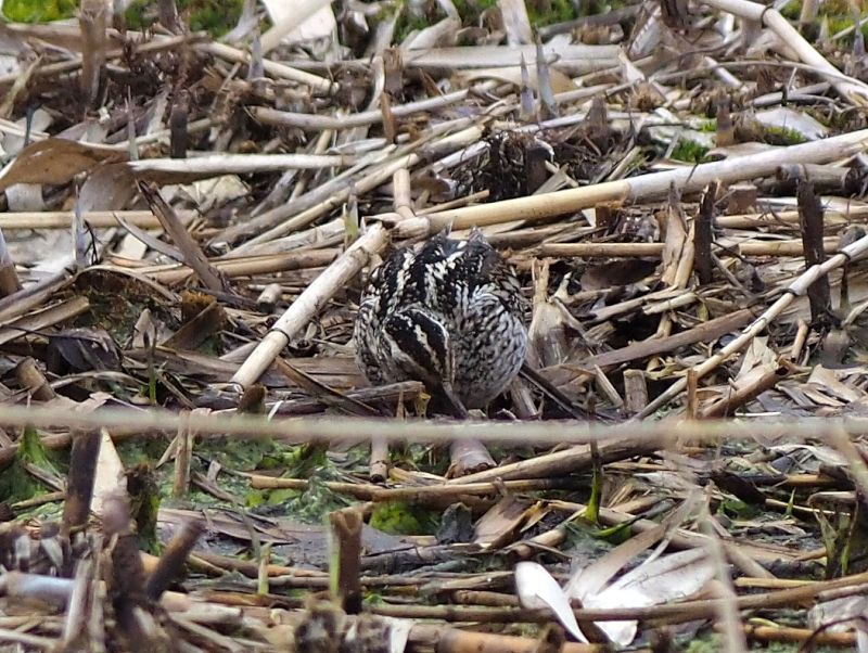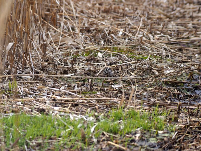 実は今回、大事件があったのですが、それは後ほど(笑)。まずはメインイベント。この日の最後に出会ったタシギです。タシギは以前から会いたかった野鳥。わぁ、かなり嬉しい。それにしても遠くからだと、タシギはどこにいるか、なかなか分かりませんね。