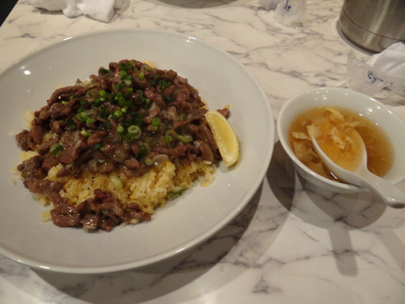 そして昼食ですが、まっちさんお薦めの秋葉原のB級グルメ「雁川」です。私は牛たん塩チャーハンの大盛をチョイス。なんと牛タンが240gも載って1100円。味もなかなかで大満足でした。そんなわけで、頭にも胃袋にも充実のポタでした。満足、満足(笑)