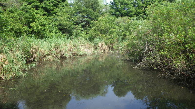 この水辺が日陰で、特に気持ちが良いので佇んでいたら、やぶ蚊の大軍に襲われてしまいました。蚊が大好きな水辺の日陰ですからね。思いっきり痒い。迂闊でした(苦笑)