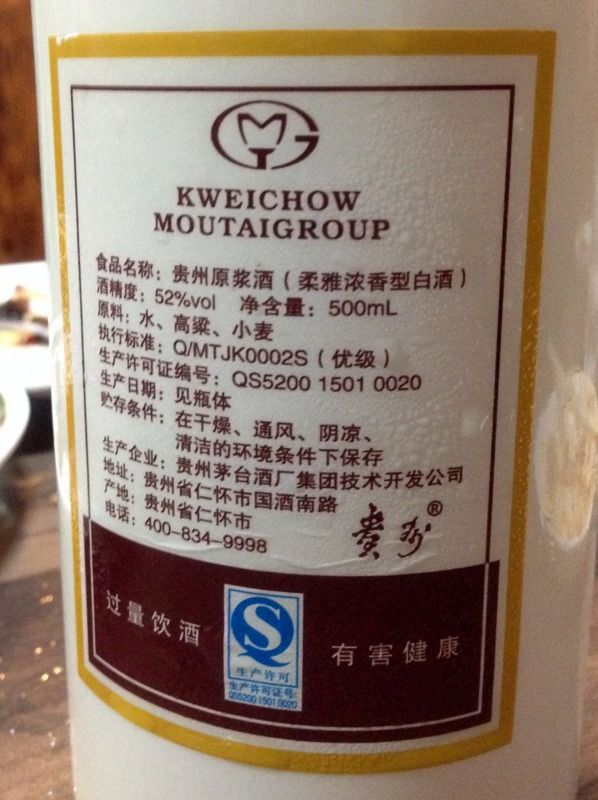 で、酔っ払う原因の一つが冒頭の写真の酒。実はこれ、中国の白酒でアルコール度数が52度(!)もあります。中国では贈答の定番。価格が高いやつはメチャクチャ高いそうで、中国では習政権の「ぜいたく禁止令」で白酒の売り上げが激減したとか。