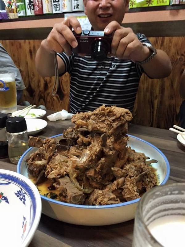 自転車仲間を囲む会、醤大骨を食べ52度の白酒を...(苦笑)