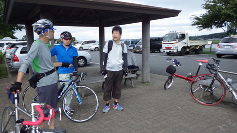 この日は手賀沼の東端、曙橋に集合。手賀沼トライアスロンの開催日だったのですね。で、手賀沼サイクリングロードを走らずに、曙橋へ向いました。既に愚兵衛さん、同行のまっちさんがいらしゃっていました。