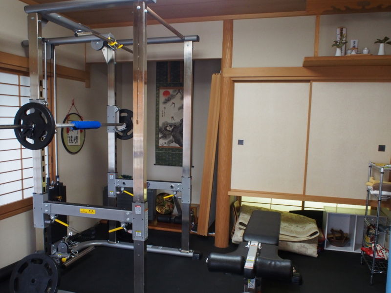 凄い! 和室だ(笑)。神棚もあるし、掛け軸も掛けてあるし。でも、置いてあるトレーニング装置は、実業団クラスの選手がトレーニングに使うようなレベル。いったい、この店は何者なのでしょう。