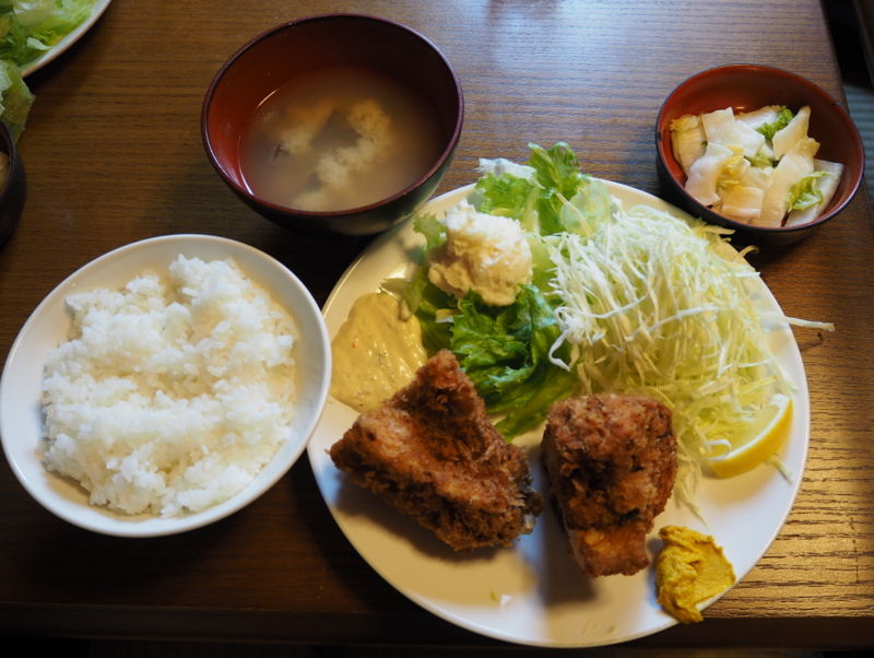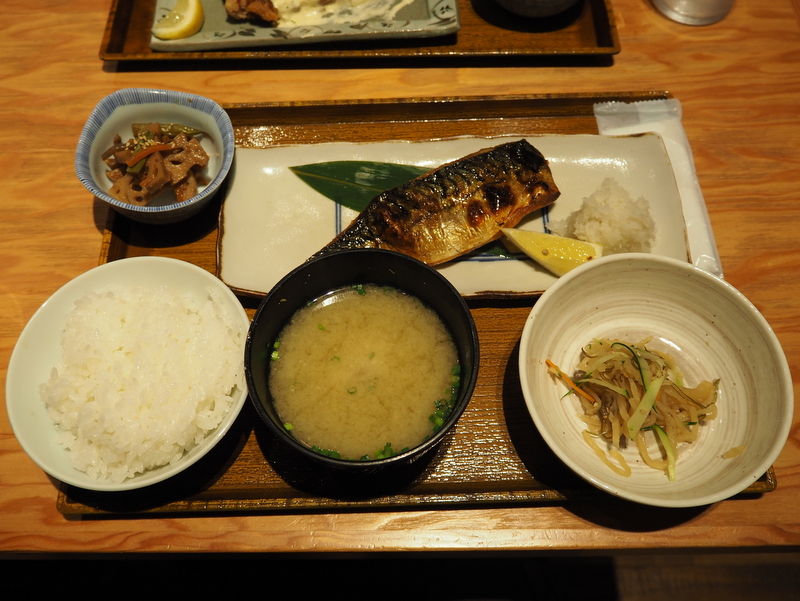 この界隈でオジサンが落ち着ける店(笑)で、昼間営業しているのはほぼ皆無。このお店は「なかよし はなれ」という定食屋兼飲み屋ですが、日曜日も絶賛営業中で助かります。私は、サバの塩焼き定食を注文しましたが、これで830円。サバはなかなかの美味。ロケーションを考えると十分満足でした。