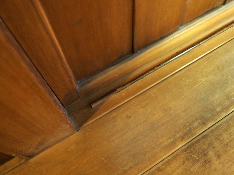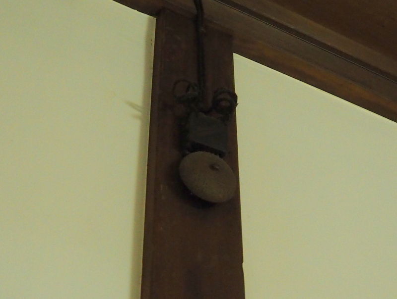 そして3枚目は単なるトイレです(笑)。ただ床にご注目。一枚板ですね。かなりの贅沢です。一番下の写真は、金庫の置かれてあった部屋に設置されていた火災報知器(?)。ものすごい年代モノでした。どういう原理で作動するのか見当もつきません。