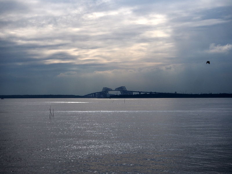 ここからの眺めは270度の大パノラマです。正面に東京ゲートブリッジ、右には東京スカイツリー、左には東京アクアラインが眺望できます。東京タワーも見えるし、天気が良ければ富士山や横浜ベイブリッジなども見れるとのこと。いやぁ、素晴らしい! 知らなかった!