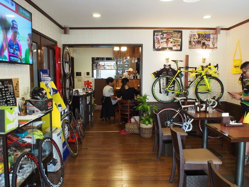 お店の方によると、この風輪はロードバイクのショップでありカフェであり、ロードバイクの経験の有無にかかわらず、気軽に入れる店としてオープンしたそうです。さらに今後は、ロードレースを続ける選手をサポートするクラブハウスのような存在も目指すそうです。