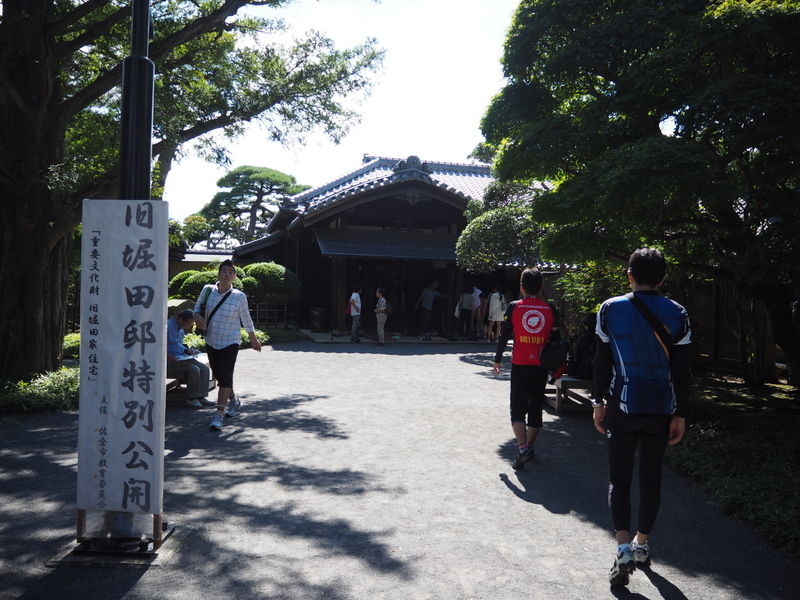 で、旧堀田邸です。立派な冠木門の横に自転車ラックも設置されており、ロードバイクの置き場に困りません。その奥には、門番所があり、特別公開日のこの日は、この門番所も見学できましたが、皆さん共通のセリフは「住めるじゃん」でした(笑)。実際、門番の人は住み込んでいたようです。