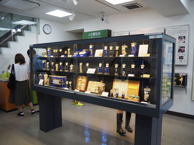 説明文を読んで少しは勉強しようとしたのですが、全く頭に入りませんでした。実は、以前その存在を知り、あまりの恐ろしさに震え上がった人食い蟲の「芽殖孤虫」も展示してあるそうで、それを見ておこうと思ったのですが、館内に入った瞬間、頭が真っ白。もう、どうでもよくなりました。