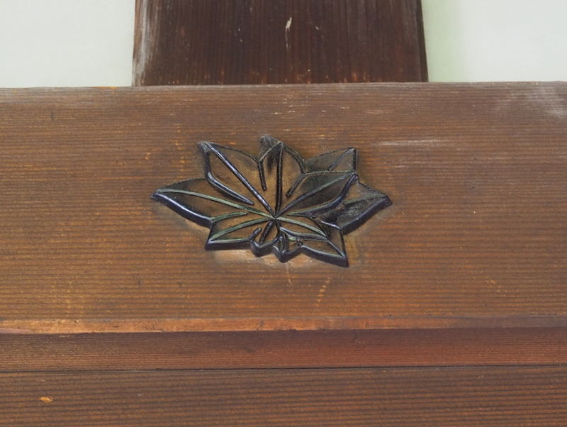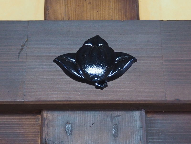 これは釘隠しですが、この旧堀田邸では3種類が使われています。上から桐、楓、橘だそうです。このうち桐の釘隠しは、客人を通す応接室や廊下のみに付けられているとのこと。部屋ごとの格式で厳密に区分されていたのですね。