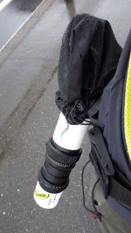 一番の問題はカメラで、この日はBORGを取り付けたミラーレス一眼を腰にぶら下げていました。助かったことに、カメラ部分を覆う防水加工のカバーが役に立ちました。