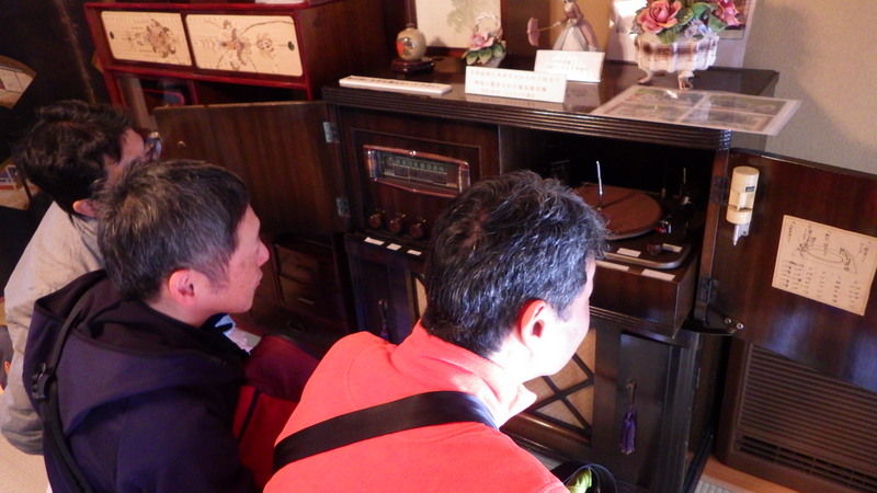 "ハイカラ"な水木さんが残した品の中で、我々の心をわし掴みにしたのが、これ。なんと特注品のオートチェンジャー付きレコードプレーヤーだそうです。10枚のレコードを順番にかけることができるそうです。そのメカに皆さん、釘付けです(笑)