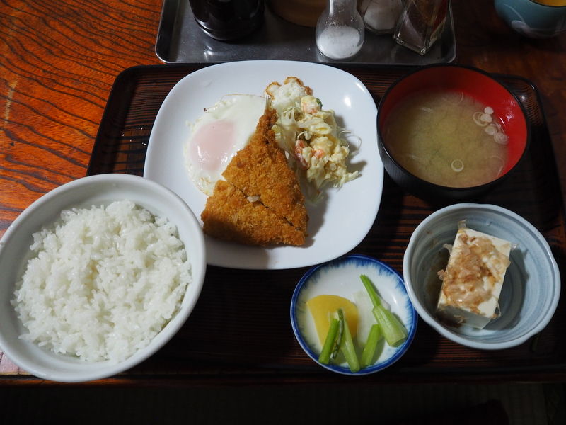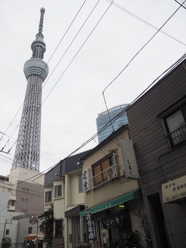 昼食は、まっちさんがネットで発見したスカイツリー直下の「いこい食堂」です。私はアジフライの定食を注文しましたが、安い! これで500円です。それに店の雰囲気もスカイツリーとハイパーコントラスの昭和レトロでいい感じ(笑)。美味しくいただきました。