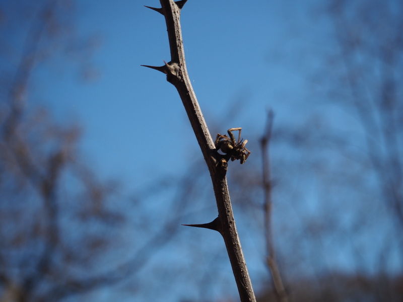 モズのはやにえは、話には聞いたことがありますが、実際に観るのは初めて。犠牲者はクモですね。モズがなぜ捕まえた獲物を串刺しにして放置するのか、諸説あるようですが、まだ定説は無いそうです。