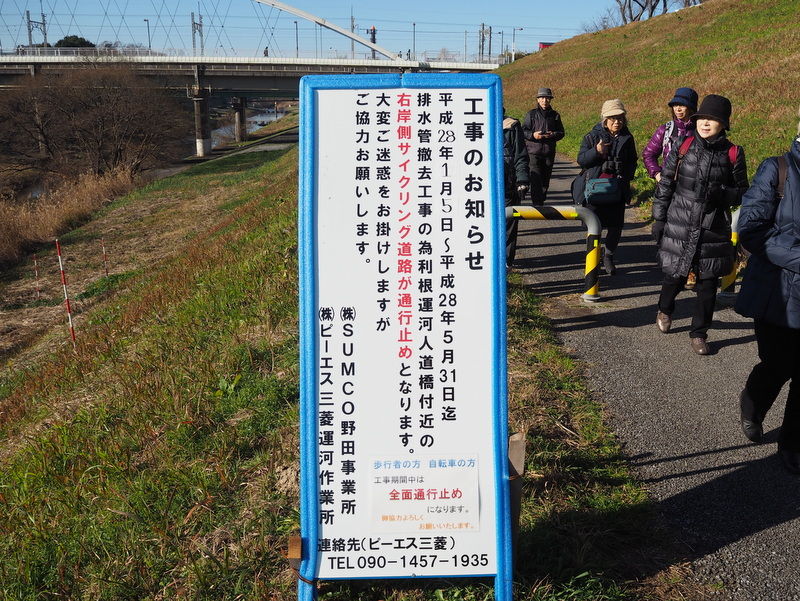 そういえば、こんな告知が。利根運河の右岸(北岸)が来年の5月末まで、工事のため通行止めになるそうです。ご注意ください。