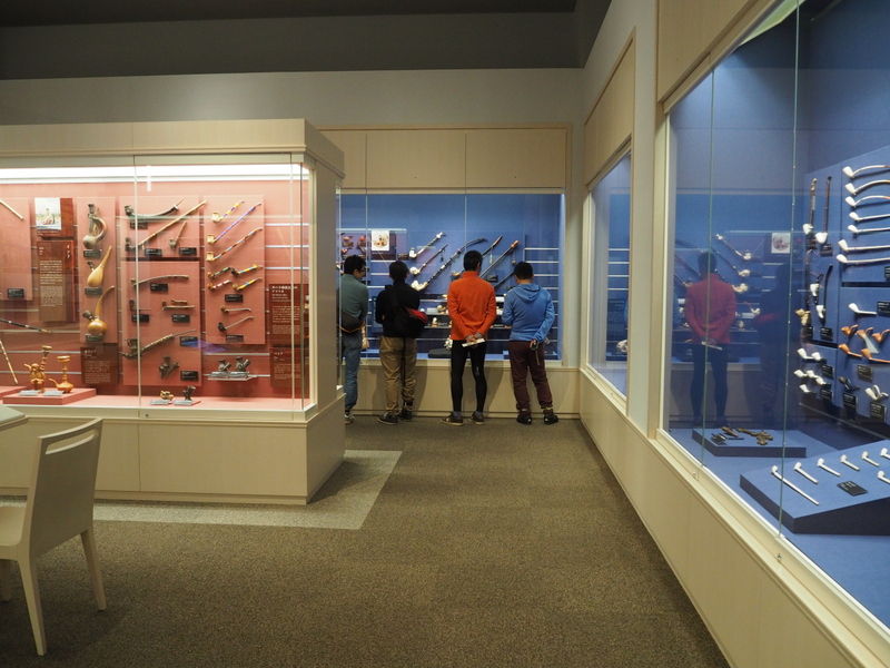 まずは特別展を鑑賞。特別展の内部は撮影禁止のために写真はありませんが、喫煙風景の描かれた浮世絵、それに贅を凝らした煙草盆や煙管(きせる)といった喫煙具が展示されていました。