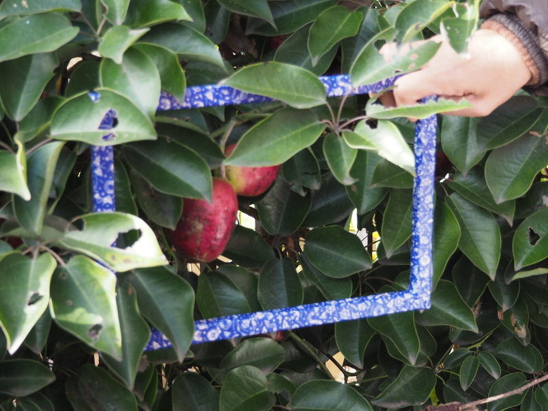 「ほら、こうすると名画のようですよ」と解説の方。うーん、名画かどうか微妙ですが、なかなか美味しそうな実です。で、「食べれるんですか」と聞いたら、「食べられますよ」の返事。俄然、関心が湧きました。「むべなるかな」のムベの実だそうです。