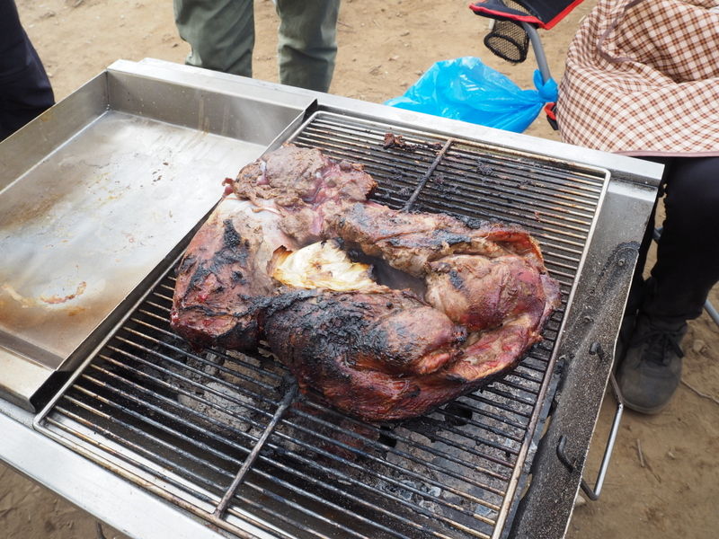 で、鹿肉です。正確には鹿のアバラ肉、つまりスペアリブです。バーベキューのメインイベントと言ってよいでしょう。鹿肉はレアでも食べらるそうで、実際にこの鹿肉もレアで頂きました。そうしたら、滋味豊かで本当に美味い。