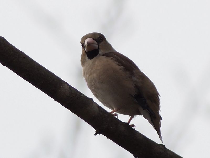 さて、肝心の野鳥ですが、思いっきり不作でした。見かけるのは常連さんの野鳥ばかり。その中で、このシメは今年初めて見かけました。逆光で結構つらかったのですが、ピントが出て隈取の顔がうまく写りました。