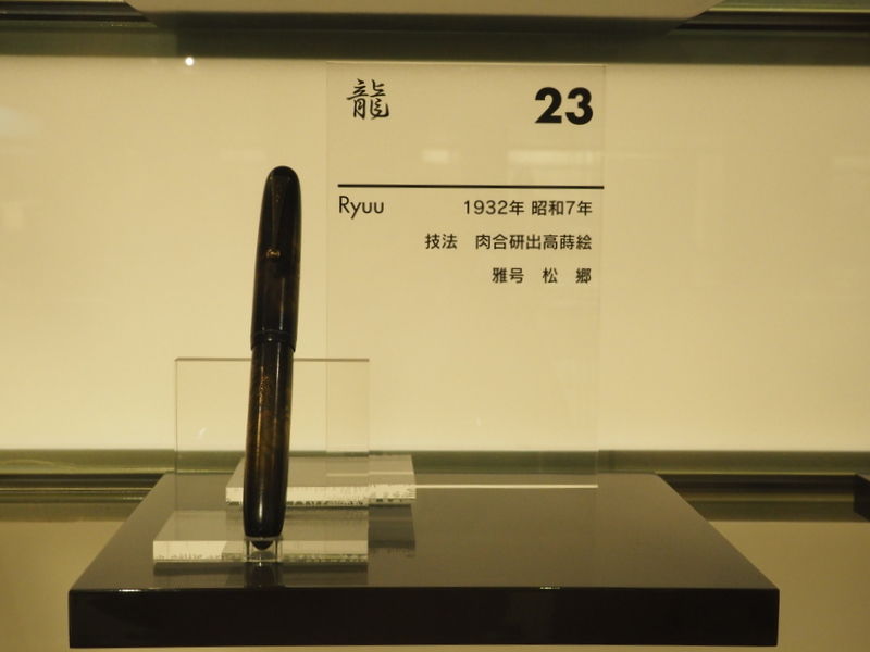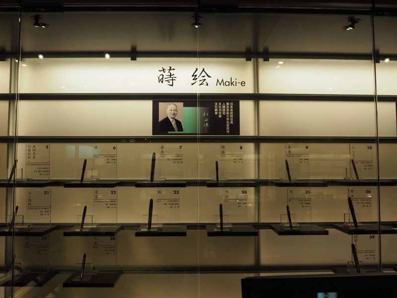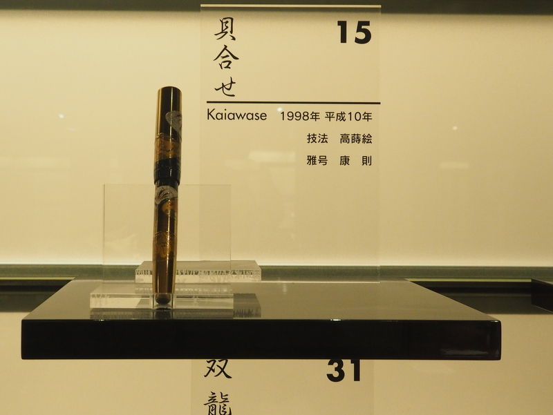 ここのメインの展示は蒔絵の万年筆。私は生来の悪筆のため、万年筆など筆記用具にはあまり関心がなかったのですが、蒔絵の万年筆はそそられますね(笑)。展示品はどれも素晴らしい工芸品でした。