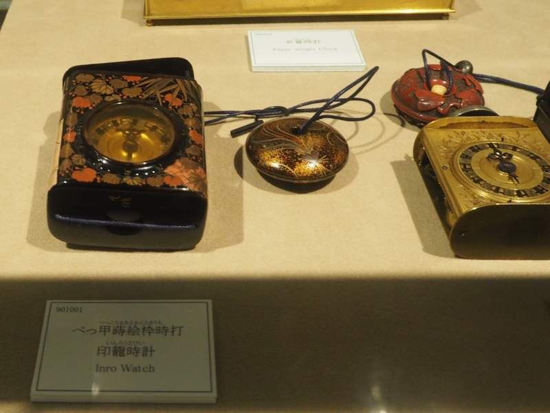 これらは和時計です。下の写真は印籠時計というものだそうで、水戸藩主の徳川斉昭(最後の将軍、徳川慶喜の父)が持っていたものだそうです。