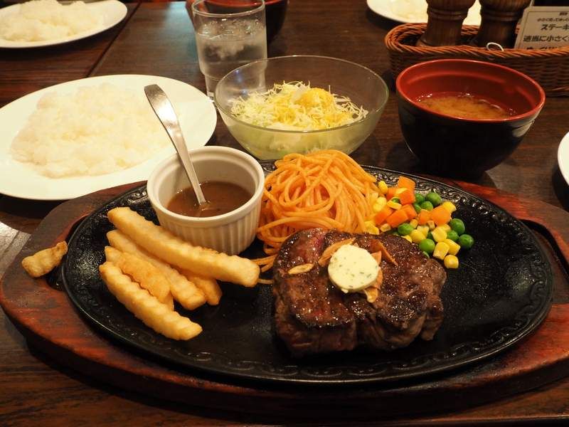 ここはステーキがメインの洋食屋さんのようですので、私は160gのステーキのセットを選択。これで1340円です。実は、私は霜降りの和牛が苦手です。一口食べるだけで、ウッときてしまいます。ですから、「肉を食べているぞ」という感じの肉がいいです。このステーキの肉はオーストラリア産だそうで、美味しく頂けました。