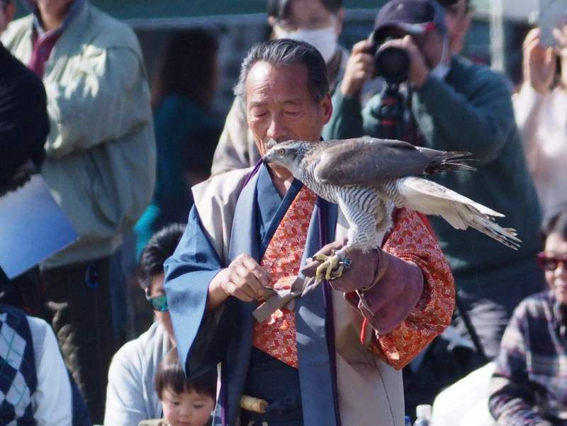 で、午後の最初の競技、オオタカによる「タイムトライアル」です。皆さんのご都合で2時には関宿をたつことにしていましたので、今回しっかり見学できたのは、このタイムトライアルだけです。要は、オオタカの飛行タイムを競うスピード競争です。