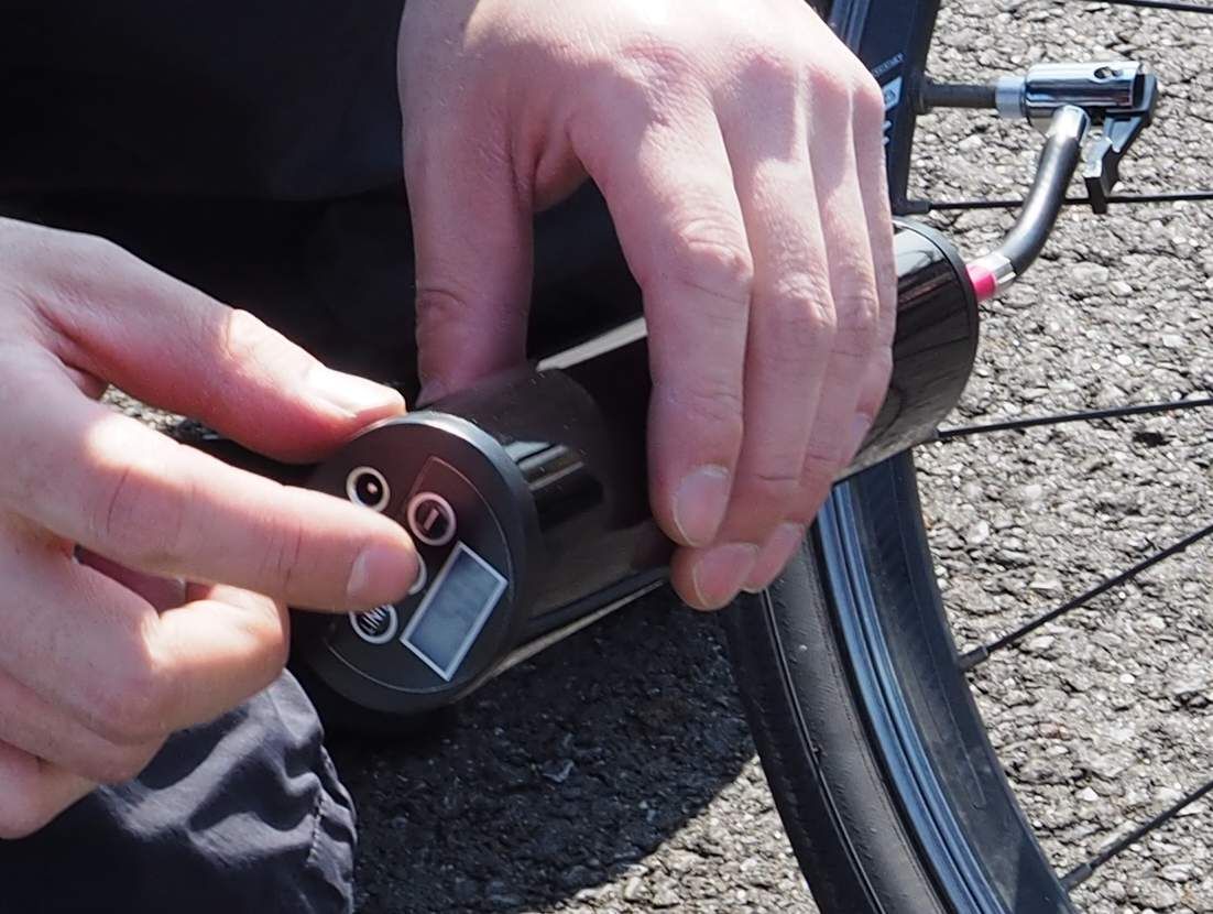 空気圧を設定して後はボタンを押せば、自動的に設定値までタイヤに空気が入ります。これ、いいじゃないですか。パンクした時、何が嫌かと言ったら、小さなポンプでひーひー言いながら空気を入れること。特に夏場は大変なので、これは欲しいかもです(笑)