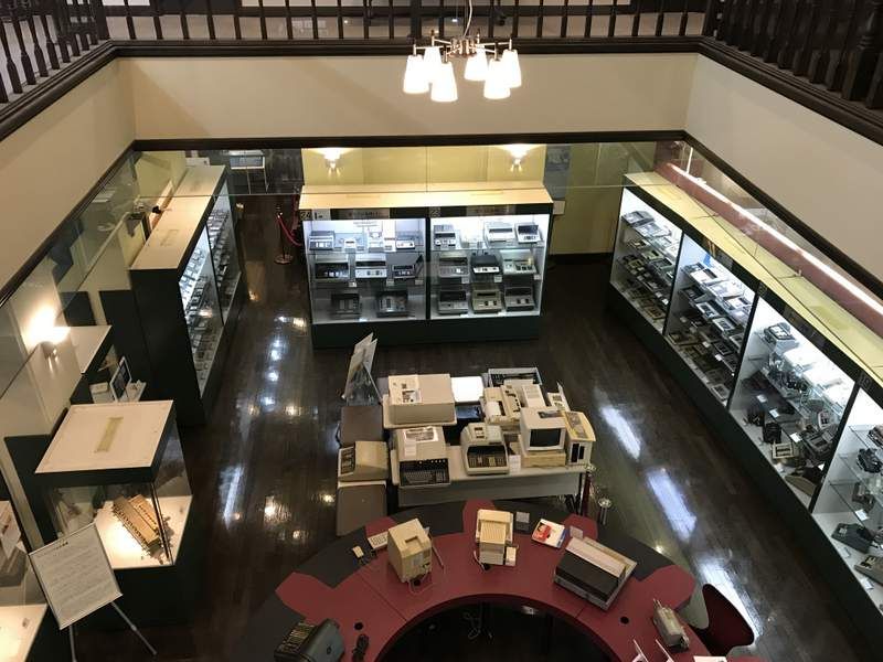資料館には計算尺なども展示されてあり、動向の皆さんは熱心にその原理を研究されていましたが、私は頭が痛くなりそうなので、ほぼスルーしました。そして仕事柄か(笑)、やはりコンピュータに目がいきます。