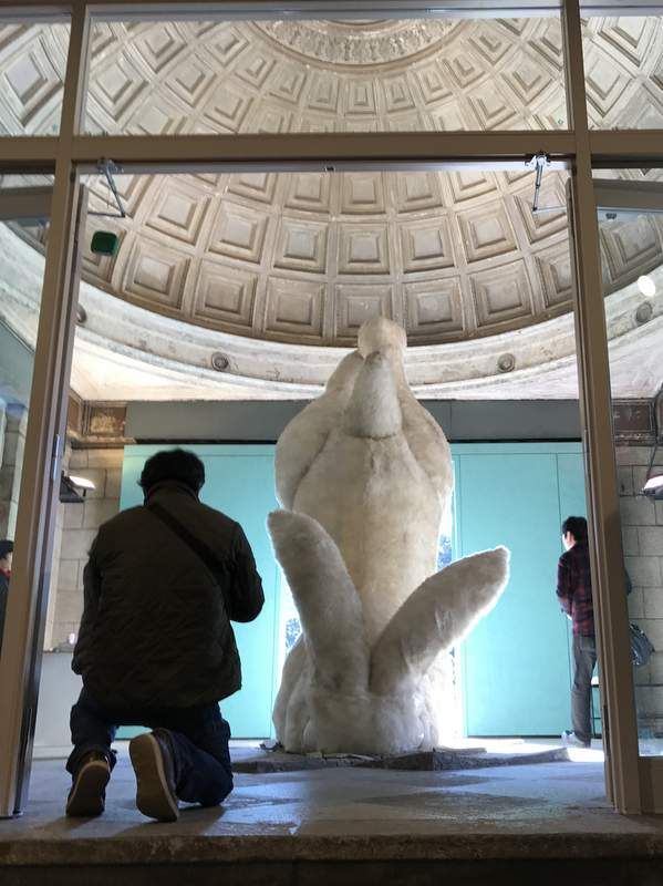 今回の一般公開は「アナウサギを追いかけて」というアート作品として公開させているようで、穴を掘りつつあるアナウサギのオブジェが鎮座しています。うーん、これはイイ。地下へ降りていく階段の空間もとてもクールです。入場するためには朝10時に配布される整理券が必要で、整理券を求めて長蛇の列ができていましたが、人気の理由が分かります。