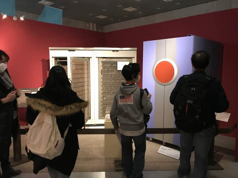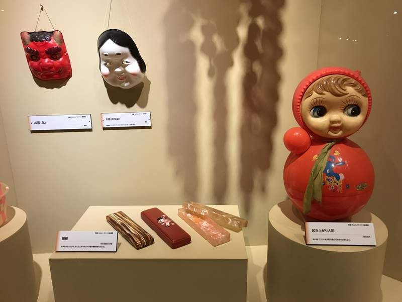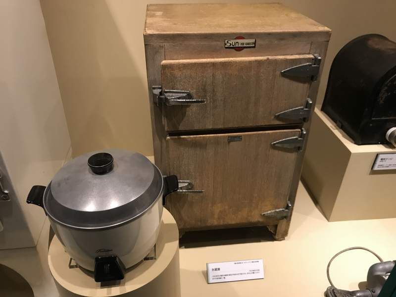 「アートだ」とだけ言って個々の展示物の話を書かないで済ませようと思っていたのですが(笑)、これらの展示物は別。私が小さかった頃は昭和40年代ですが、母親の実家にはまだ氷で冷やす冷蔵庫がありましたし(もちろん電気冷蔵庫もありました)、炊飯器は皆こんな感じでした。それにセルロイド製の起き上がりこぼしもメッチャ懐かしい。