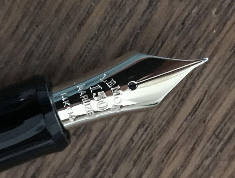 檸檬万年筆のペン先には14金の中字で、「LEMON」「150」「MARUZEN」と刻印されています。限定感があってとても良いです。