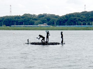 この1体が壊れたのが発見されたのは7月6日朝のことだそうです。結構騒ぎになったらしく、7日付の毎日新聞にも「カッパの像:手賀沼環境浄化のシンボル、1体倒壊、岸辺に放置、事件性は不明」という記事になっていました。