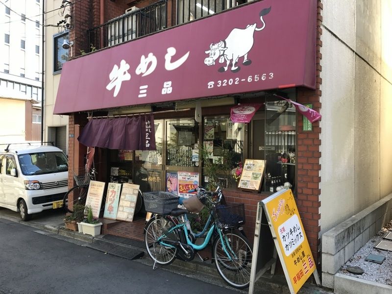 昨日の土曜日に、自転車仲間の皆さんと自転車で走り、私のソウルフードを食べに行きました。早稲田大学西門のすぐ近くにある「三品食堂」のカツ牛です。