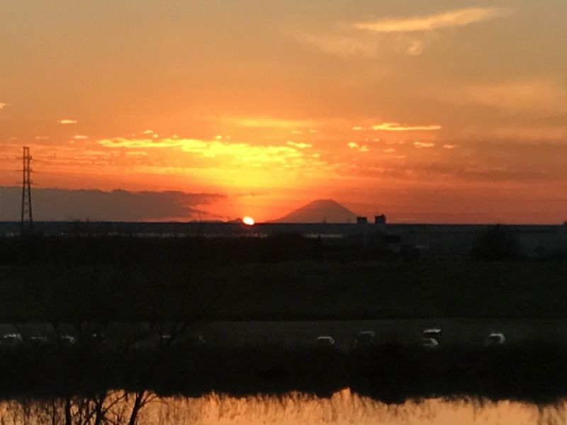 江戸川まで戻ってくると、冨士山の脇に夕日が沈む頃でした。うーん、美しい。若き日の思い出にひたりたくなるような夕日でした。ご同行いただいた皆さん、ありがとうございました。