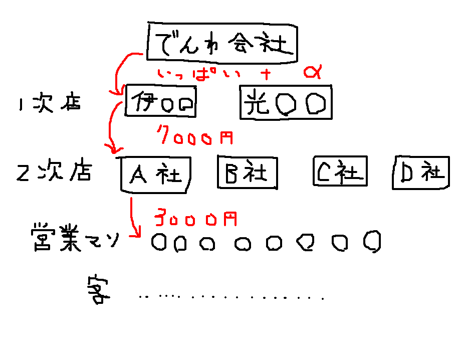 一次店(キャリアと直接契約)、二次店(一次店と契約)、