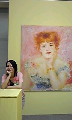 ルノワールの「ジャンヌ・サマリーの肖像」をバックに。