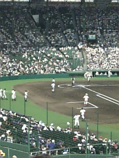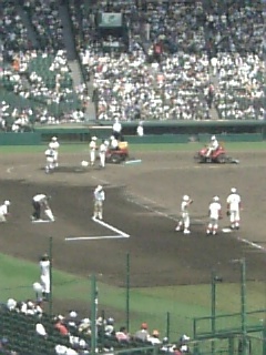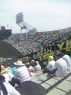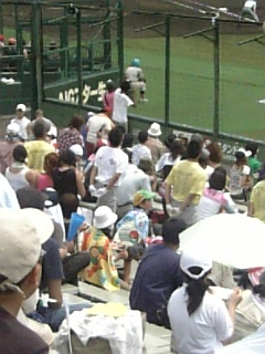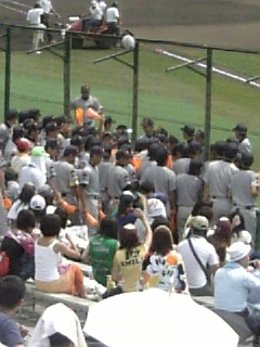 試合終了後、駒岩の応援団と次の1塁側・済美(愛媛)の応援団がところてん式に出て入って入れ替わるんやけど、そんな状況で荷物をほっぽって買い物に行くわけにもいかず、