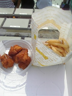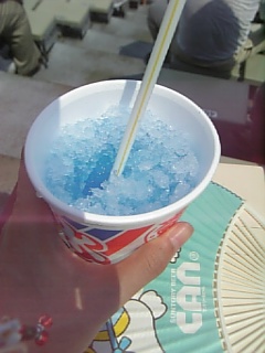 じいちゃんたちとはぐれるのは残念やったけど、仕方なく荷物をもってカキ氷を買いに移動しました。