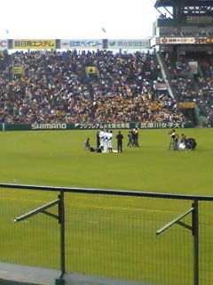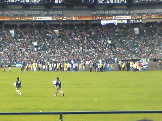 なぜか乗り込む羽目になり内野の人工芝上を走らされた鳥谷くんの図(笑)