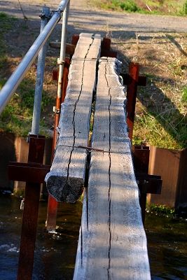DSC04396 DSC04406今井の用水路を渡るには車が渡れる橋を使うしかないと思ってましたが、こんな手作りの橋が架かってるんですねぇ。自転車ではちょっと無理そうなので、真ん中まで歩いてみましたが怖かったです。