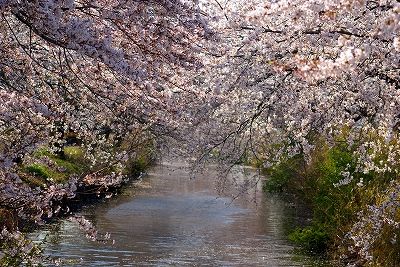 DSC04422今回はサクラの絨毯ではなくトンネルですが、キレイですね〜。ゆっくりとクリスピを押して端までじっくりとサクラを楽しみましたよ。散った花びらは殆ど水面にはありませんでしたが、どこいったんでしょう?