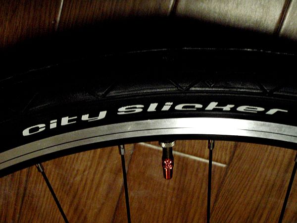 街乗り用という事で「タイオガ シティスリッカー」ですね。真ん中にまっすぐ溝があるので、これが雨対策かな?