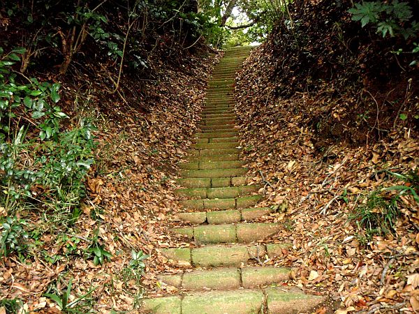 振り返ると、鳥居の奥に階段が見えます。ちょっと薄暗いので不気味ですが、今日は明るいので登ってみましょう!