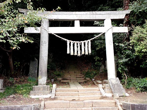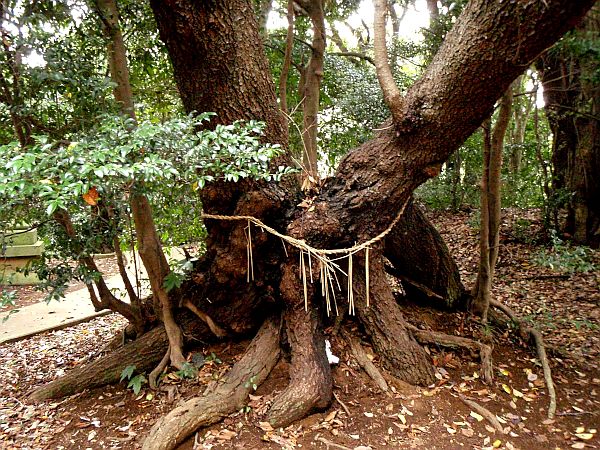 登ってみると、ご神木が目ノ前にありました。どれが根っこでどれが幹なんでしょうね?この奥には社殿があるのですが、全面板張りで寂しい感じでした。(後で貝の化石層があったそうですが、気が付きませんでしたね)