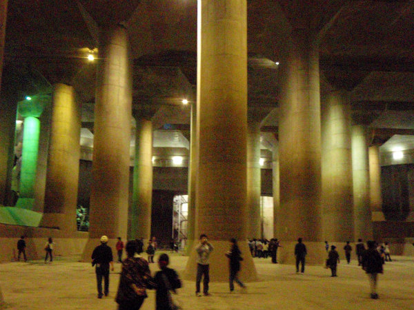 そして、地下神殿へ。防空壕?と思ってしまうような入り口から入って階段を下ります。結構長いので地下神殿の深さがわかりますよね〜。そんでもって、一番下に付いたら柱がいっぱい!!すごい眺めです!!なんだかフルートが聞こえてきて良い感じでした。その奥では何か人だかりがありましたが、説明でもされてるんでしょうが、人がいっぱいだったのでパスしました。とりあえず写真を取ってから、奥の階段を登って外へ。この階段のところがライトアップされていて綺麗だったんですが、階段では写真取らせてもらえませんでした(悲)